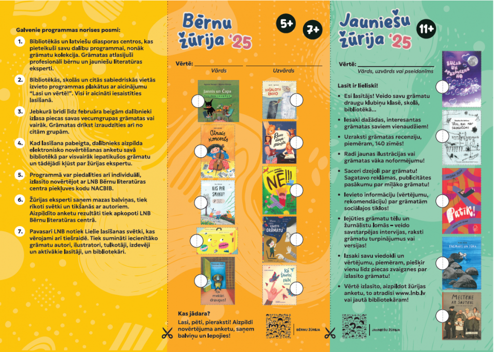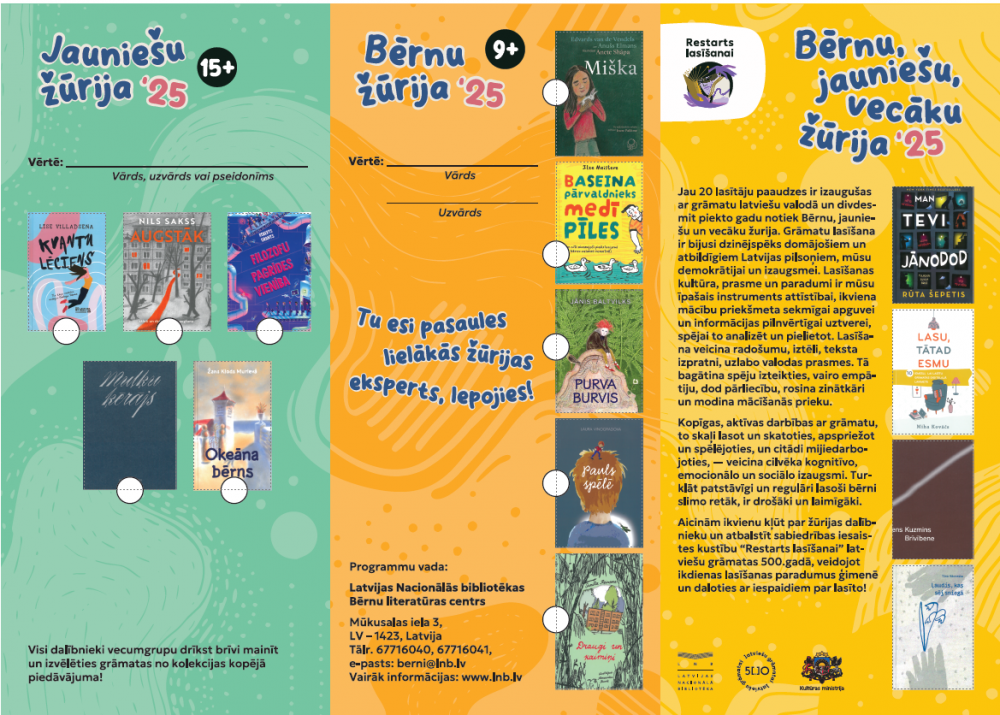 No 2001. gada Latvijā veiksmīgi darbojas lasīšanas veicināšanas programma "Bērnu, jauniešu un vecāku žūrija". Tā ir LR Kultūras ministrijas un Latvijas Nacionālās bibliotēkas finansēta Bērnu literatūras centra iniciatīva, ko raksturo visplašākais aptvērums. Programma tiek īstenota ikvienā Latvijas novadā un, kopš 2007. gada tā ir pieejama arī ārpus Latvijas robežām. Katrai vecuma grupai ieteiktās grāmatas lasa un vērtē bērni, jaunieši, no 2012. gada – arī pieaugušie. Tādējādi, rādot priekšzīmi bērniem, par žūrijas ekspertiem ir kļuvuši daudzi vecāki, vecvecāki un skolotāji.